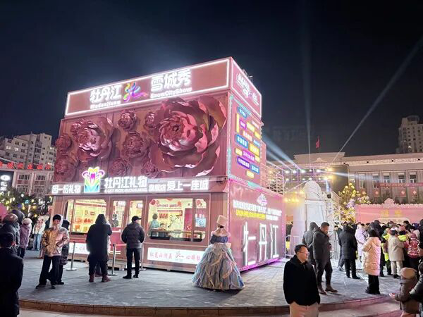 以“活动+消费”深度融合为核心,打造全场景沉浸式体验,推动年味氛围与消费热度双向攀升。景区好戏连台,雪乡景区每日上演快闪、非遗大秧歌等互动节目,沿河商业街年货大集汇聚千余种东北特色商品,形成“观赏+购买”消费闭环;威虎山雪村推出穿羊皮袄、包饺子等沉浸式年俗体验,同步丰富年俗美食消费清单;镜泊湖景区呈现千年冬捕仪式,配套冬捕鲜鱼直销、冰上火锅套餐等服务项目。城区亮点纷呈,文化宫广场“集装箱艺术集群”持续上演“牡丹江雪城秀”实景演艺,联动文创销售、特色小吃、互动体验形成消费集聚。